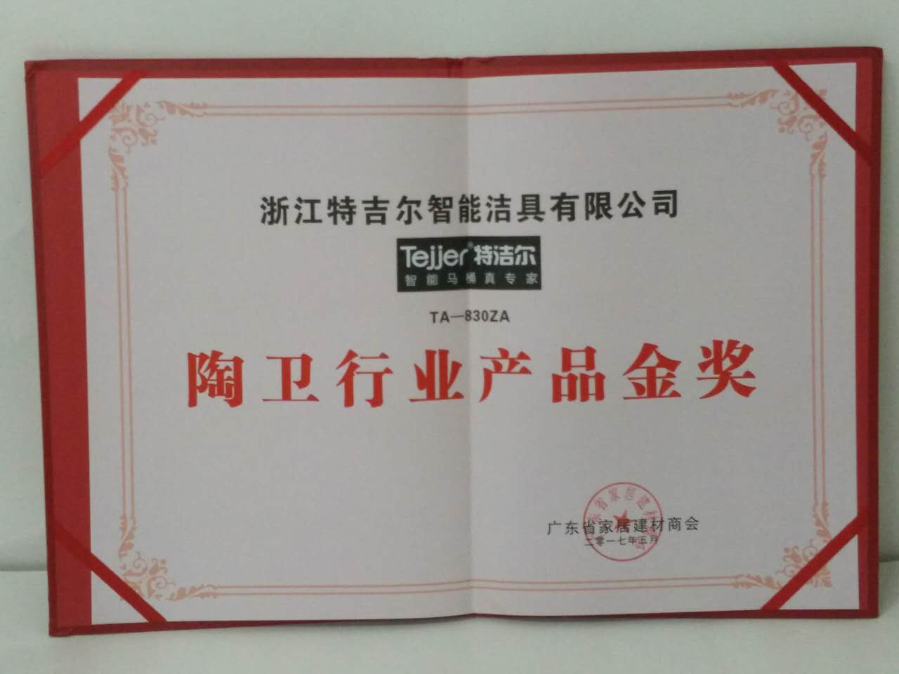 在刚刚不久结束的“第十二届国际陶瓷工业发展论坛”上,特洁尔智能洁具TA—830ZA智能马桶凭借其优良的产品品质,被广东省家居建材商会授予“陶卫行业产品金奖”荣誉。这是对特洁尔智能洁具一直坚持成为“智能马桶真专家”发展理念的肯定。
