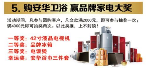 五、购安华卫浴,赢品牌家电大奖,交款满2千抽一次,以此类推,上不封顶;