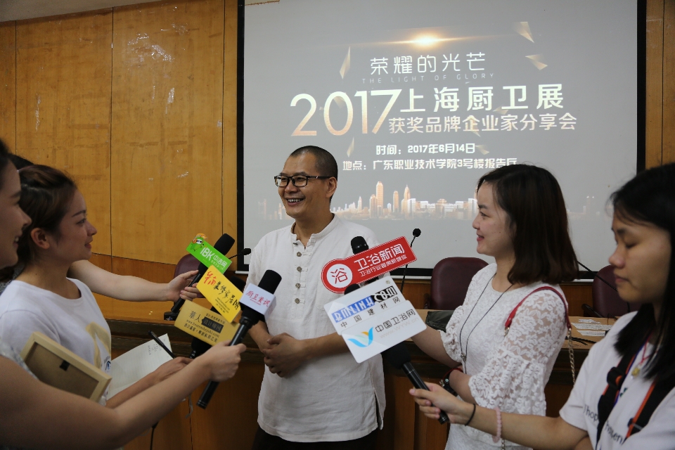 6月14日,2017上海厨卫展获奖品牌企业家分享会在广东职业技术学院举行。佛山市卫浴洁具行业协会秘书长刘文贵、佛山市卫浴洁具行业协会设计专委会会长张艾斌、佛山市卫浴洁具行业协会设计专委会秘书长焉莫、木立方卫浴董事长丁伟、高诗丹智能卫浴宋江华、楼兰卫浴品牌张越、广东职业技术学院副教授肖机灵等领导、卫浴设计班学生及陶卫网等行业媒体出席。
