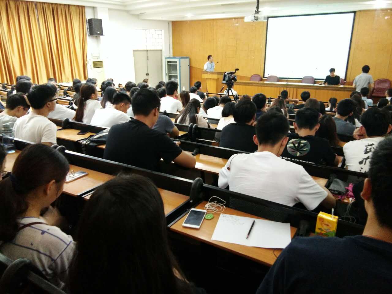 木立方卫浴董事长丁伟从木立方浴室柜材料种类、尺寸分类、颜色搭配、产品活动爆款的角度,向广东职业技术学院卫浴设计班的学生讲述浴室柜行业的专业知识,获得学生整整掌声。