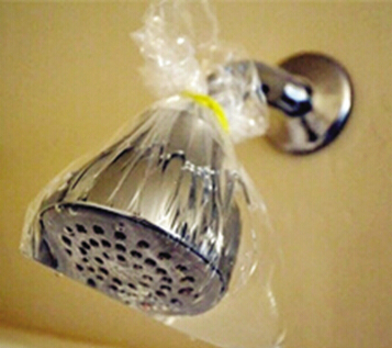 水垢是由水中的碳酸化合物累积而成,对付水垢可以用酸来中和。清洗时要特别注意不能用强酸(最好使用白醋),以免对花洒表面造成腐蚀,家里的食醋是去除水垢的有利武器。将花洒全部浸泡在食醋,尽量多泡几个小时,这样就可以去除花洒头中水垢了。