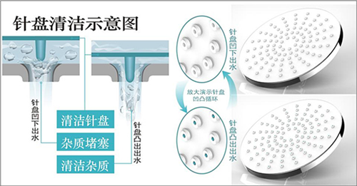 安华卫浴针对国内水质,研发自洁花洒拥有自洁针盘,完全不用担心水垢问题。自洁原理:水压0.5KG及以上,自洁针盘会持续自动运行,带动空气吸入,同时运动中针盘顶出时,可将水污排出;利用此上下运动,连续水流形成间隔3秒左右的段状出水,呈雨淋式落下,使淋浴水流增大,有脉冲按摩的舒适体感!