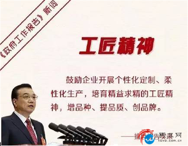 近年工匠精神也成为备受关注,国务院总理李克强在《2017年国务院政府工作报告》中再提"工匠精神",明确提出"大力弘扬工匠精神,厚植工匠文化,恪尽职业操守,崇尚精益求精,打造更多享誉世界的'中国品牌',推动中国经济发展进入质量时代"。