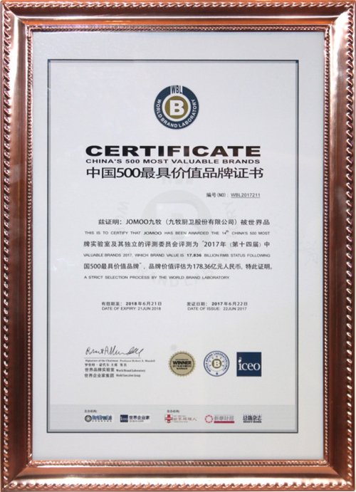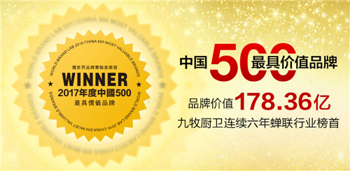 6月22日,由世界品牌实验室(World Brand Lab)主办的“世界品牌大会”暨第十四届“中国500最具价值品牌”发布会在北京举行,会上揭晓了2017“中国500最具价值品牌”榜单。作为中国智能厨卫领导者,九牧以178.36亿元的品牌价值,连续6年蝉联行业第一,成为行业大赢家。