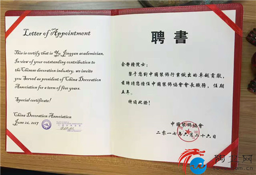 余静赣为中国装饰行业做出卓越贡献,在2017年6月26日荣获中国装饰协会聘请担任中国装饰协会会长职务。