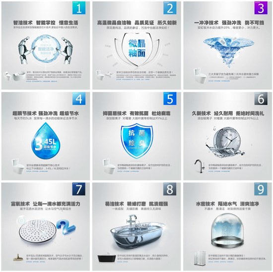 自信来自于技术。安华卫浴以技术为核心打造品牌,并在技术研发环节上一直坚持深入发展下去,从而确保企业的绝对领先优势,其独创的9大技术支持体系为产品的“过硬”品质保驾护航,为顾客提供高品质的产品。
