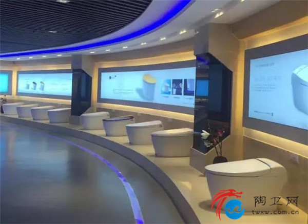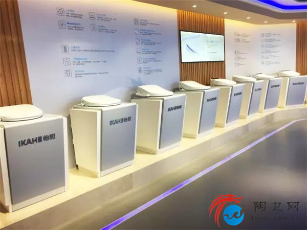 展厅的左边,一个个巧夺天工的智能马桶像昂首挺胸接受检阅的士兵,器宇轩昂地站立。