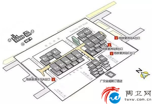 从广州火车站出发:乘坐地铁二号线(广州南站方向)到昌岗站换乘八号线(万胜围方向)抵达新港东站(A、C区)或琶洲站(B、C区)。