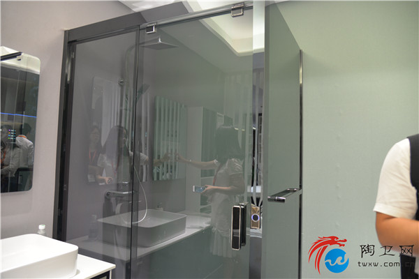 此外,记者还注意到,这款叫做“卡米诺”的定制产品的淋浴房门是感应开关的,按照产品的具体明目介绍的话,该叫做磁悬浮淋浴房。伸手靠近后,淋浴房门便可自动感应到,自动开关起来很是轻盈。