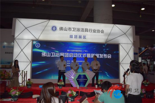 7月8日上午10:30第十九届中国建筑装饰博览会佛山卫浴展团启动仪式暨新闻发布会在B区12.1馆主通道旁的卫浴展团功能区内如约举行,中国建材市场协会卫浴分会秘书长、佛山市卫浴洁具行业协会秘书长刘文贵先生、中国建博会副总经理华谦生先生、中国陶瓷城总经理高原先生、九牧厨卫有限公司品牌部总监沈艳鲲先生等企业家及近30家大众媒体、行业媒体出席。
