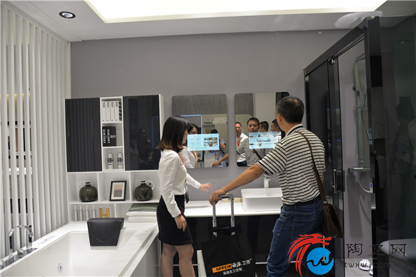 在刚刚过去的2017广州建博会上,这个定制空间是欧派卫浴展厅的主推,占据了整个厅位大半的位置。当然,这与欧派卫浴最后收获的成果是成正比的,单凭这个定制空间就吸引了不少观众纷纷驻足。