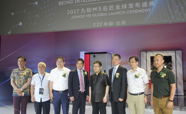 九牧M5名匠全球发布盛典(北京)于北京时间2017年7月27日隆重举行,发布会在央视著名主持人陈伟鸿的主持下拉开帷幕,九牧董事长林孝发、九牧常务副总裁刘艳与居然之家董事长汪林鹏、全国工商联家具装饰业商会执行会长张传喜等政商代表、行业大咖出席盛典,共襄盛举。发布会现场,林孝发就M5名匠进行主题演讲,并与在场嘉宾媒体分享九牧全球化战略规划。同时,九牧M5名匠广告大片《与梦同行》全国首发,天猫平台预售通道亦在发布会现场正式开启。