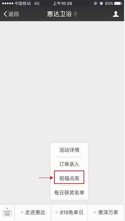 ③在惠达卫浴公众号菜单栏下点击 :819免单日——祝福点亮