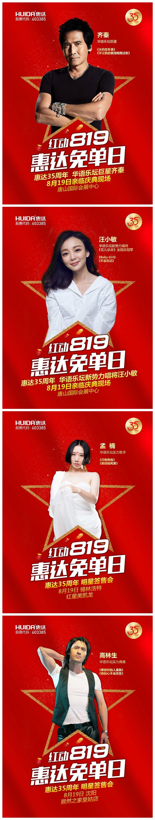 日前,行业领导者惠达卫浴在全球范围内举办的“惠达35周年庆暨819超级免单日”活动正式拉开帷幕。据悉,活动将推出免单、半价、1元抢定制、大奖等力度空前的优惠;另外还计划邀请35名巨星,在8月19日当天,为惠达加持,为消费者献唱,并在众多网络平台上同步直播。