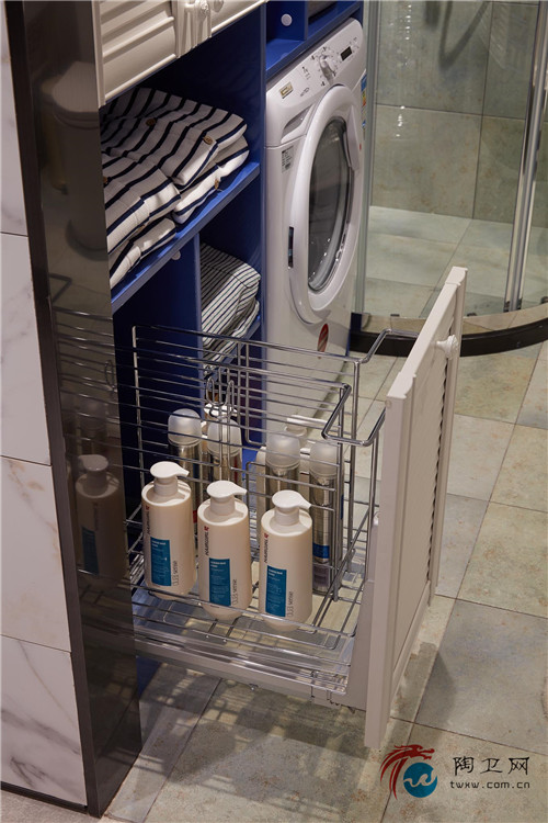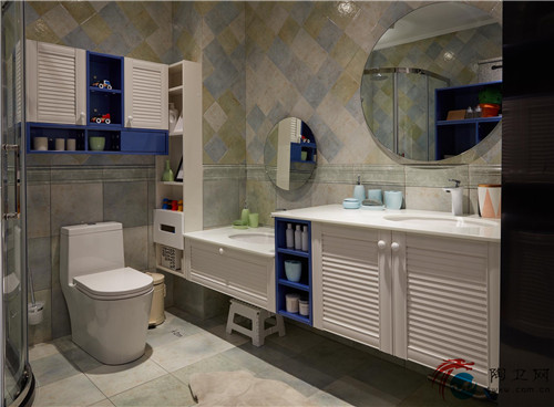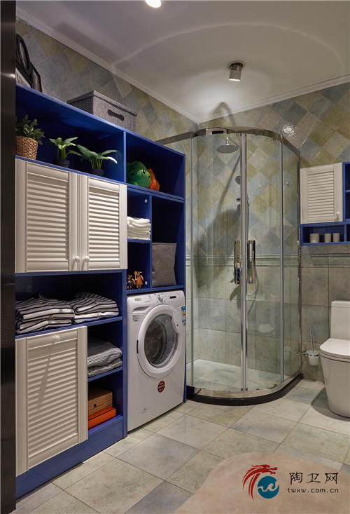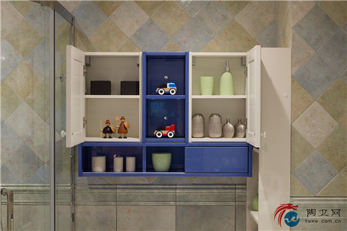 定制空间的整体色调摇曳于梦幻的蓝白色之间,是一种永远不会落伍的色彩搭配,这也被称为欢愉的天伦之所。亮色很容易就成为浴室的一大亮点,也很容易与人们对浴室的定性思维形成强烈的反差,想想就让人欲罢不能。整个浴室风格属于清新的地中海味儿,如果忽略不看蹲便器,是否让你有一种置身于卧室中的感觉呢?