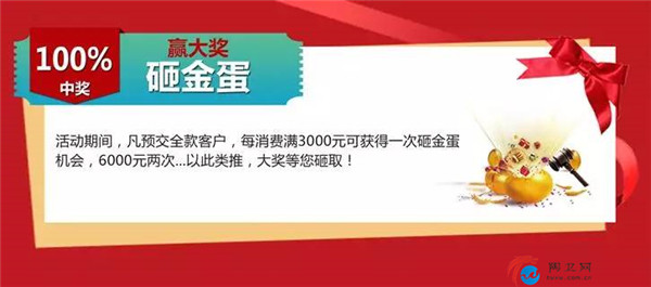 活动期间,凡预交全款客户,每消费满3000元可获得一次砸金蛋机会,6000元两次...以此类推,大奖等您砸取!