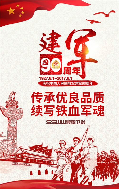 今年,是中国解放军建军九十周年,在这个特殊的日子,中国解放军首次举行以庆祝建军节为主题的专项阅兵,向世界展现中国军队的强军成果。浪鲸卫浴为人民解放军送上祝福,祝贺中国解放军建军九十周年。