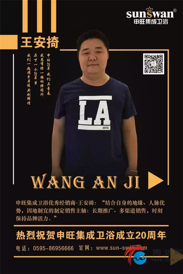 正值申旺集成卫浴创立二十周年,王总送上自己衷心的祝福:希望申旺家人们家旺?财旺?有申旺,往后的日子一起旺上加旺!