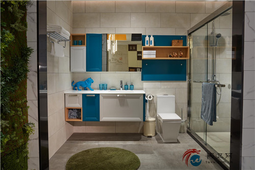 相信每个人的第一感觉都是一样的,浴室中的一抹蓝很抓人眼球。橙色和蓝色的对比搭配使两种颜色各自的视觉冲击得到了最大化,浴室柜上的动物陶瓷摆设使整个浴室跃动了起来,这点很重要,没人会喜欢阴晦暗沉的地方。