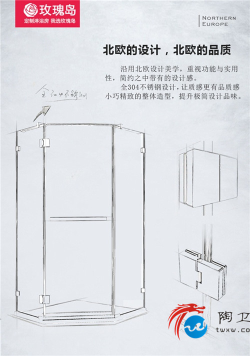 下面我们一起来详细解读下玫瑰岛这款已畅销丹麦、瑞典、芬兰等北欧国家的淋浴房,同时对比下市场上其他品牌的高端产品,看看899/㎡这个价格的含金量究竟有多高。