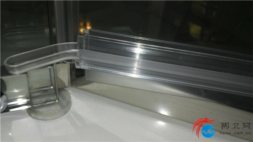 为了避免洗完澡往外打开房门时,门上的水珠滴到房体外的地板上,想得周到点的厂商都会在门的底边安装一个导水槽。而玫瑰岛比其他品牌更贴心的地方就在于,它把导水槽的下水端做成了半球形,这样即使脚不小心踢到上面也不会弄伤。