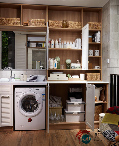 洗衣柜则采用了一体式的陶瓷盆,更具性价比。柜内的设计面面俱到,让生活井井有条。晾衣架采用智能全自动化的设计,遥控操作,体验起来会更加舒适、随性。