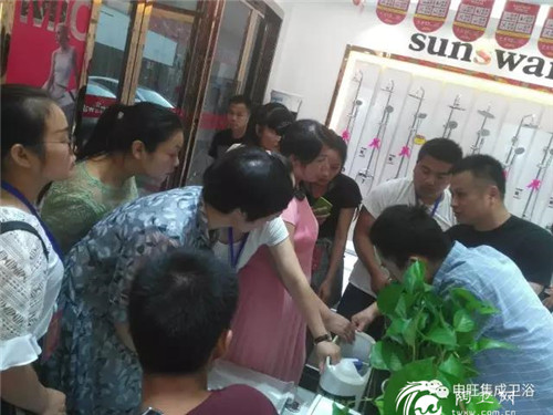 8月17日当天早上,经销商伙伴们陆陆续续来到酒店签到。当日下午,参会人员在工作人员的带领下来到申旺集成卫浴展厅参观,大家对升级之后的展厅形象给予了高度认可和评价,一致认为,精装的店面形象能给消费者传递一种品牌价值。