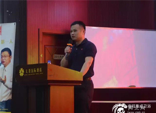 随后,颜总再次上台为大家讲解公司发展规划以及招商政策。颜总首先用各项数据证明了卫浴市场还是有很大机会的,其次还介绍了申旺品牌在线上线下所作出的各类营销和宣传动作,实现为门店引流,促进销售的目标。颜总还对本次大会的重头戏——“招商政策”进行一一讲解。对此,经销商朋友们认真听讲,颇感兴趣。