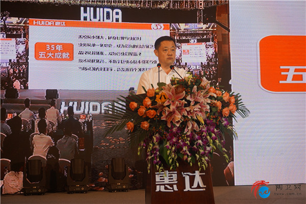 王惠文在致辞中感谢了各级政府和行业协会的支持和帮助、合作伙伴和经销商的通力合作、惠达全体员工的辛勤耕耘。他表示2017年是惠达二次创业第二个“五年计划”的开局之年,是新的起点,惠达正在制定新的发展战略,走智能化、国际化之路,从而实现品牌世界领先,品质世界领先,规模世界领先。缪斌、胡亚南在致辞中分别给予惠达高度评价,缪斌表示,惠达35年来持续创新已成为国家住宅产业化卫浴产品基地企业及民族品牌的重要领军者之一。胡亚南表示,惠达卫浴已成为中国卫生陶瓷行业标志性品牌之一,连续多次当选“中国厨卫百强”整体卫浴领军企业10强。会上,中国建筑卫生陶瓷协会为惠达授牌,以表彰惠达对行业、社会做出的突出贡献。