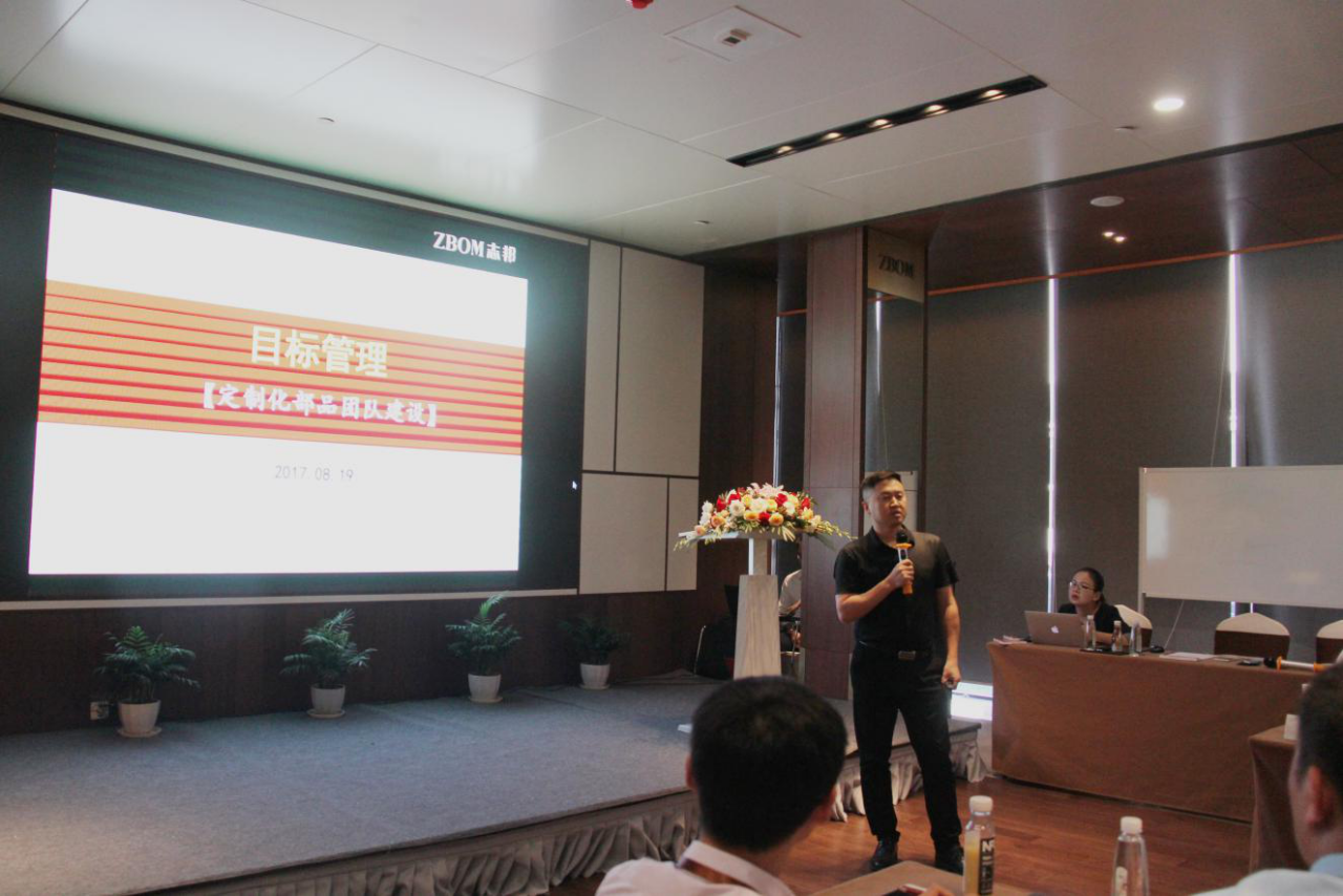 张总作《定制化部品团队建设》主题演讲,面对企业常言“一切以目标为导向”,张总阐述目标管理三大步骤:战略规划、上下分解、横向协调。