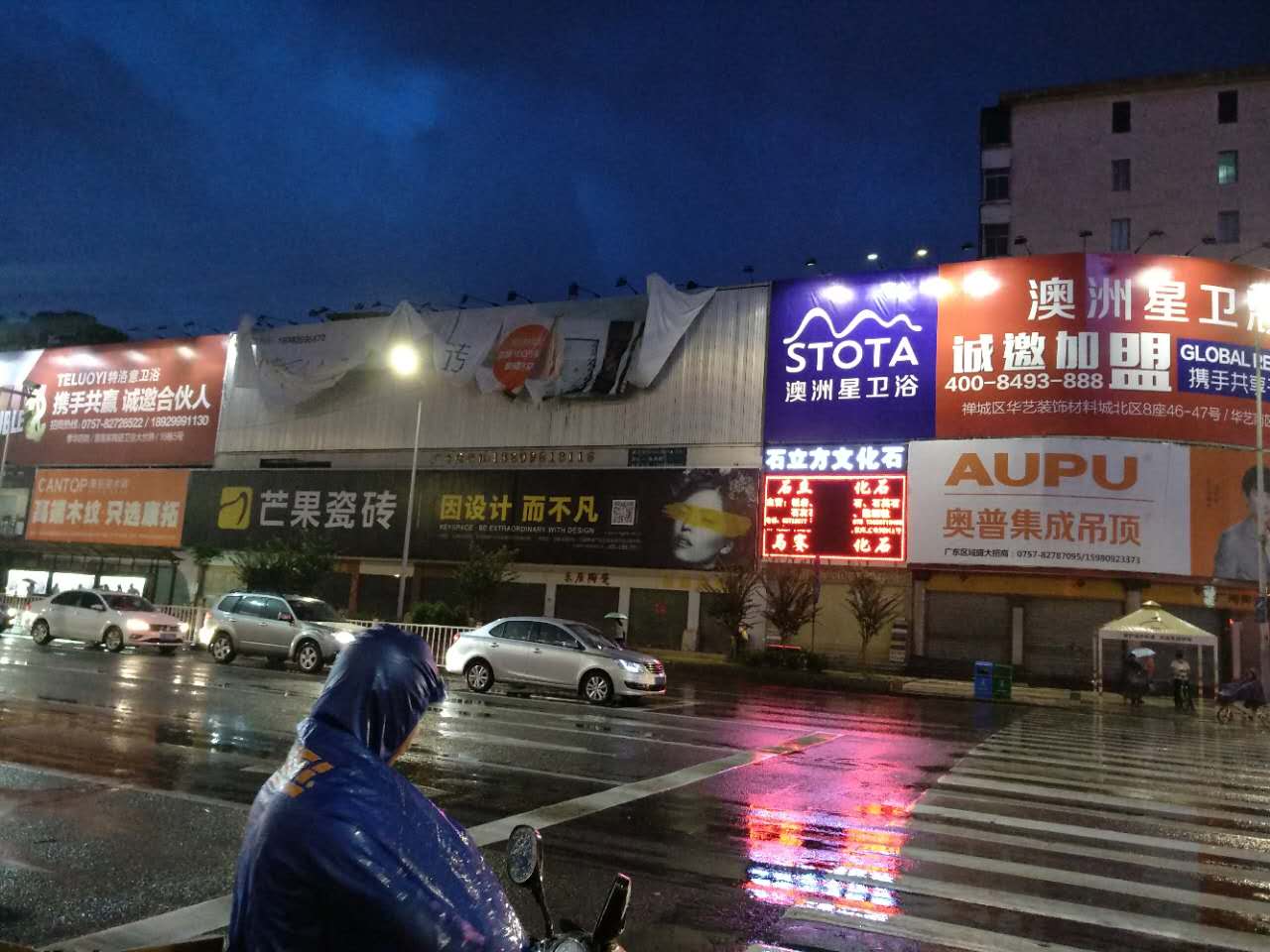 佛山中国陶瓷城对面的广告被吹坏