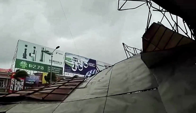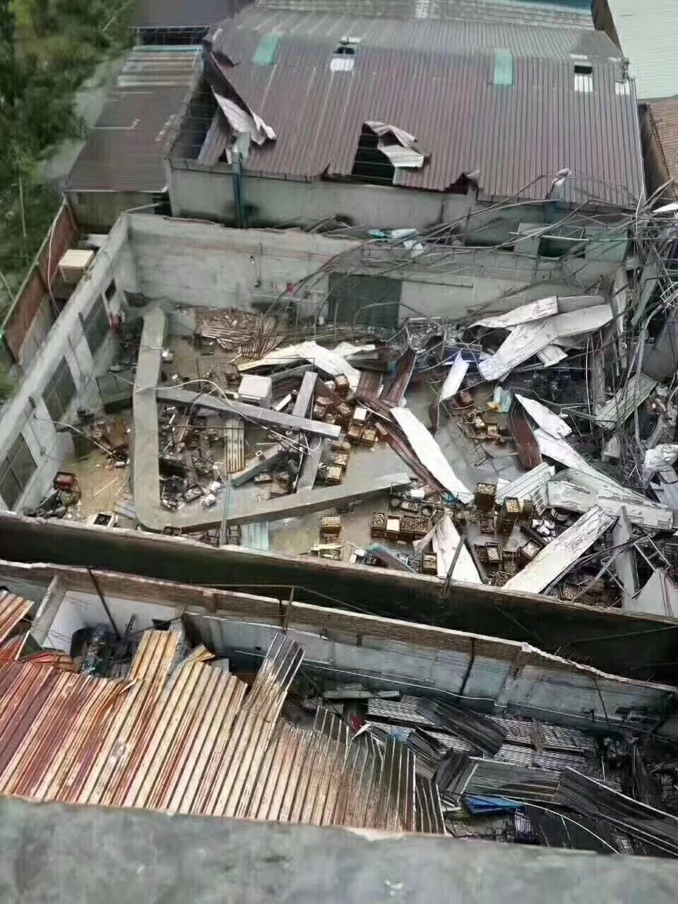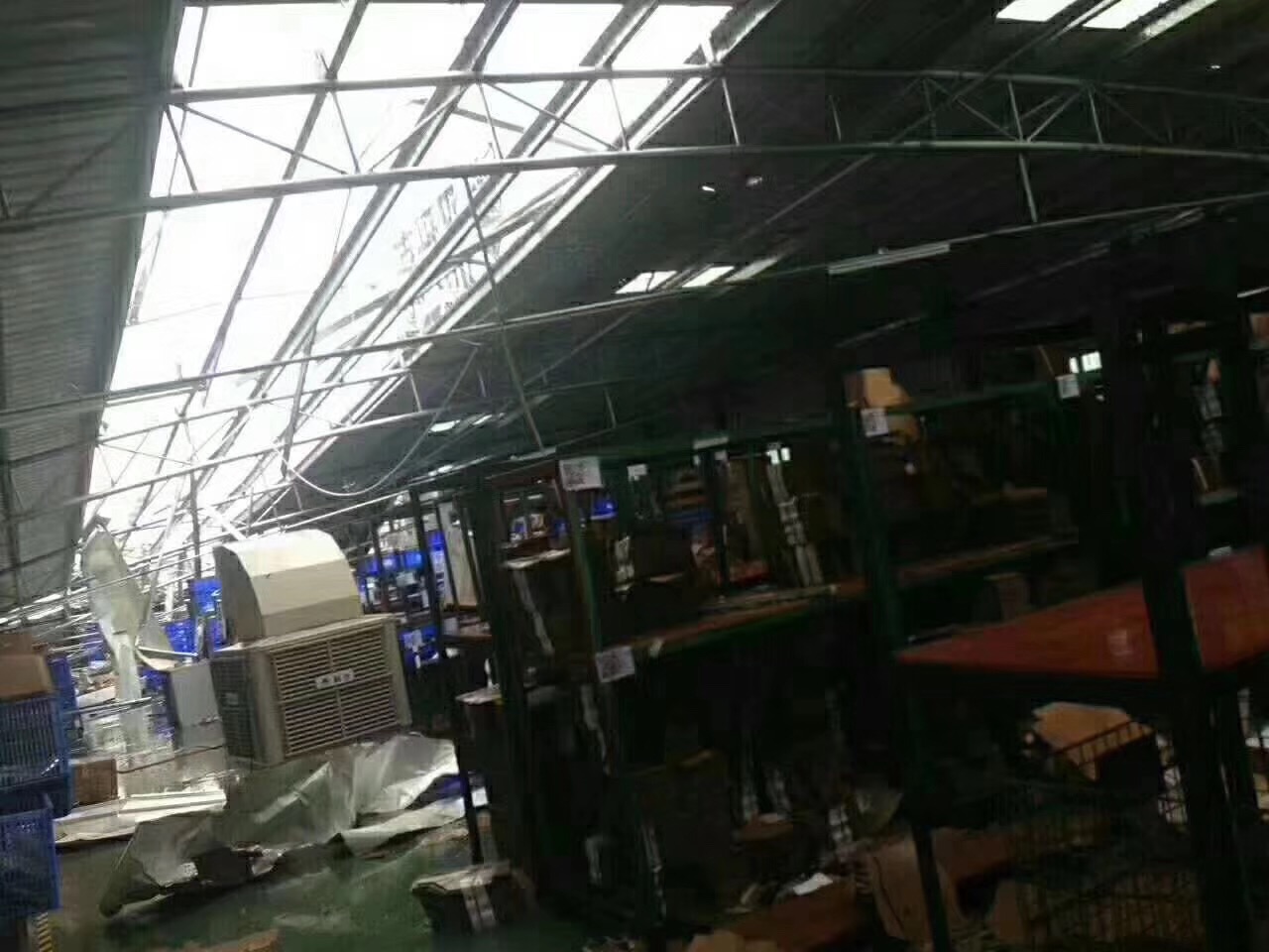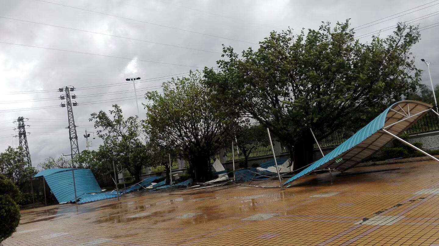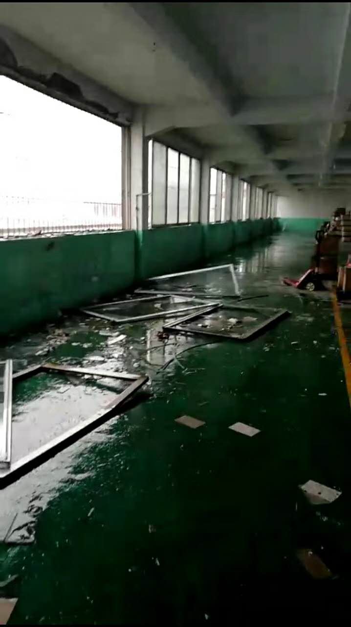 这家企业的损失更惨重,厂房的屋顶不见了,可见但是“天鸽”的破坏力有多大。