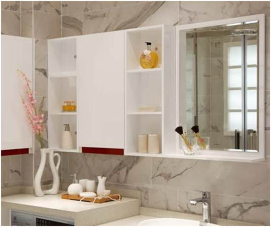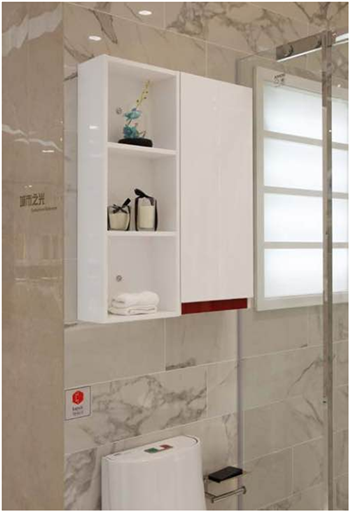 因此,箭牌定制卫浴的“城市之光”系列,在马桶上方进行了吊柜的单开门+开放式取物设置,同时采用了封闭和敞开的两种设计。吊柜的尺寸经过精细计算,既不会让人在站立时尴尬地“撞头”,也不会产生空间压迫感。
