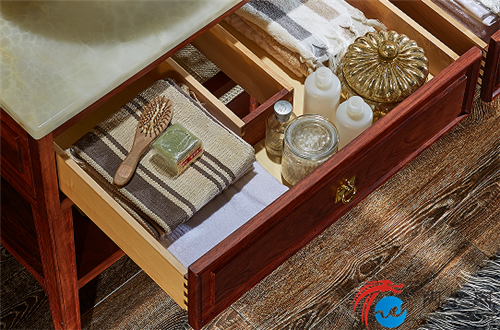榫卯结构严丝合缝又不着痕迹,隐含着古人的价值观和世界观。心海伽蓝的“颐静闲苑”和“云龙”浴室柜,抽屉采用梯台形的燕尾榫工艺。