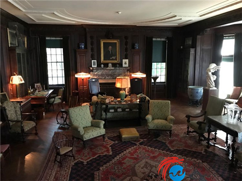 超大的书房。庄园同时是外交之所:罗斯福也是一位"庄园外交"的行家里手。他在纽约州的宅邸"斯普林伍德"是一座混杂了联邦风格和意大利风格的三层大宅,褐色外墙和白色柱廊。这座大宅建造于1845年,有15个卧室,周围有250公顷的花园。在第二次世界大战前和战争期间,罗斯福在"斯普林伍德"招待过英王乔治六世夫妇,加拿大总理麦肯齐 金,荷兰女王威廉明娜和女王储朱丽安娜,挪威王储奥拉夫和王妃玛尔塔,以及温斯顿 丘吉尔等名人。
