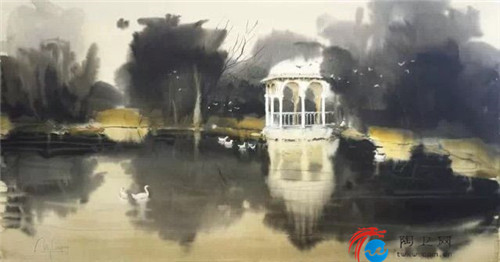 名家作品示意,水彩陶壁画创作更胜一筹,因为画水彩釉上陶坯创作完成后,经1200到1300高温窑变,借自然神力。。意外又是意料之中。。