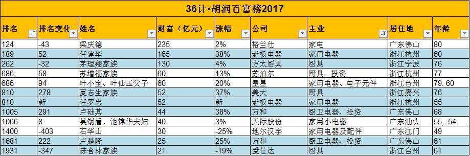 如果以单纯的厨电板块来说,老板电器任建华以165亿元的财富成为厨电行业首富,方太厨具的茅理翔家族以130亿元的财富成为厨电行业第二大富豪。其中,老板电器和万和分别各有两位上榜。
