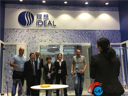 理想卫浴总经理危五祥先生、理想欧洲设计中心代表大伯先生及理想外贸员与国际客户合影留念