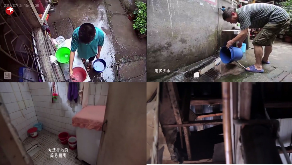 这间有着百年历史的典型“穿斗式”川西老宅,由于年久失修早已不见“青砖石木”的清雅原貌。不仅屋顶漏雨、房间潮湿、在生活上也极其不便,由于没有现代的供水系统,所有的用水都要靠人力端进去。房屋最原始的木结构房子,已经酥烂,几乎无法支撑自己本身的重量。整个宅子里没有排污设施,要上厕所只能去附近的商场,走一个来回要20分钟,王奶奶只能依靠一个痰盂解决个人问题。