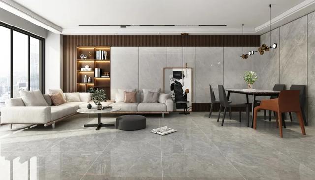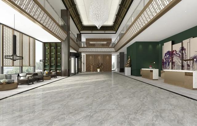在工装公共区域(过道、大堂等)大面积采用蒙特灰作为地面铺贴主材,赋予空间一种严谨又不失轻松的商务氛围视觉的通透感,连纹大板给予公共空间一种延伸,更加的大气。