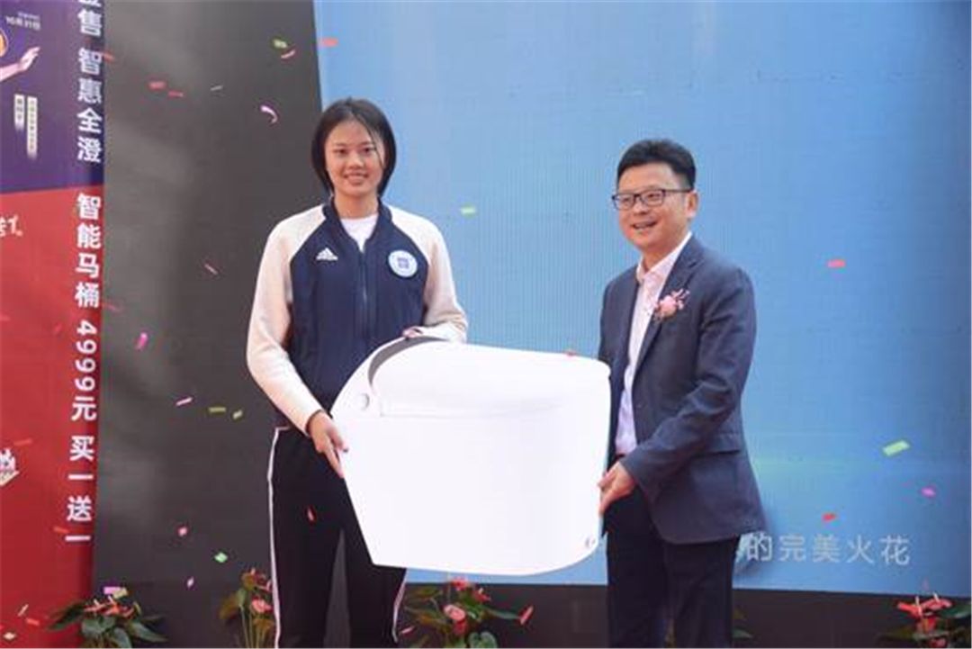 为了感谢龚翔宇助阵惠达卫浴江阴金三角旗舰店庆典活动,殷慷先生特地为龚翔宇送上了旗舰产品HDE7001T智能座便器,该智能坐便器有紫外线杀菌、零水压冲水、多方式操控等优点。龚翔宇也贴心地为现场的粉丝们送出了10个签名排球,邀请粉丝登台合影,现场气氛好不热闹。随后,激动人心的“总裁签售”环节,殷慷为现场30位业主送去了实惠与安心。