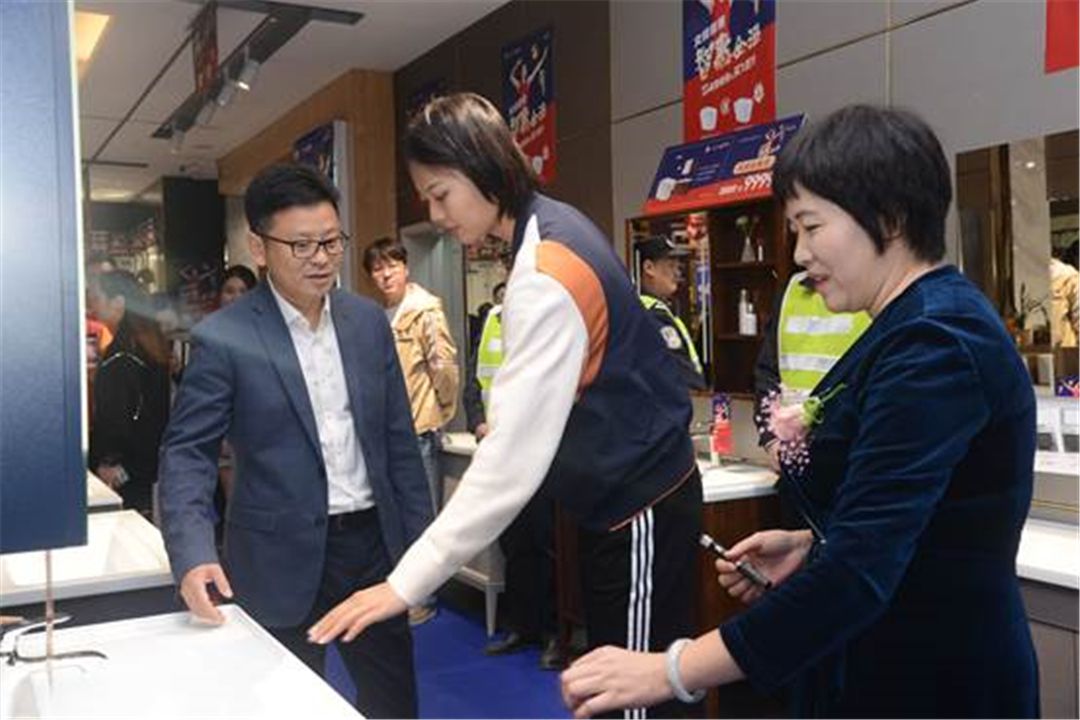 在惠达相关工作人员的陪同下,中国女排奥运冠军龚翔宇、江阴市金三角建材市场有限公司副总经理周琳、江阴装饰装璜协会会长赵建洪,惠达执行总裁殷慷、惠达卫浴国内销副总经理单骥、惠达卫浴江阴金三角旗舰店总经理王建海、惠达卫浴阳台柜事业部总监王金岭等一起参观了旗舰店。多样化的产品、年轻化的设计、热情周到的服务,为消费者构建品质生活提供了保障,也全面展示了惠达品牌的企业核心理念。