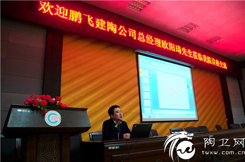 2015年3月16日下午,刚刚参加“两会”归来的景德镇市鹏飞建陶有限责任公司总经理欧阳琦,应江西省陶瓷工艺美院邀请,举办了一场“用文化创新开辟事业前程”的主题讲座,给400余名师生分享了他的创业经历和今年“两会”的热点话题和会议精神。