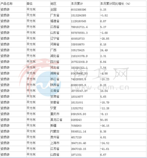 瓷砖进口分类统计数